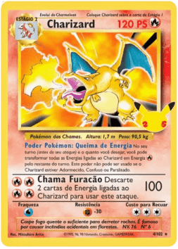 A Carta Charizard 4/102 – Base Set é um dos cards mais icônicos do Pokémon TCG, representando a nostalgia da primeira edição lançada no Brasil. Esta unidade está danificada, apresentando sinais evidentes de desgaste devido ao tempo e ao uso. Ainda assim, continua sendo uma peça histórica e colecionável para fãs e jogadores que valorizam a raridade e a autenticidade.